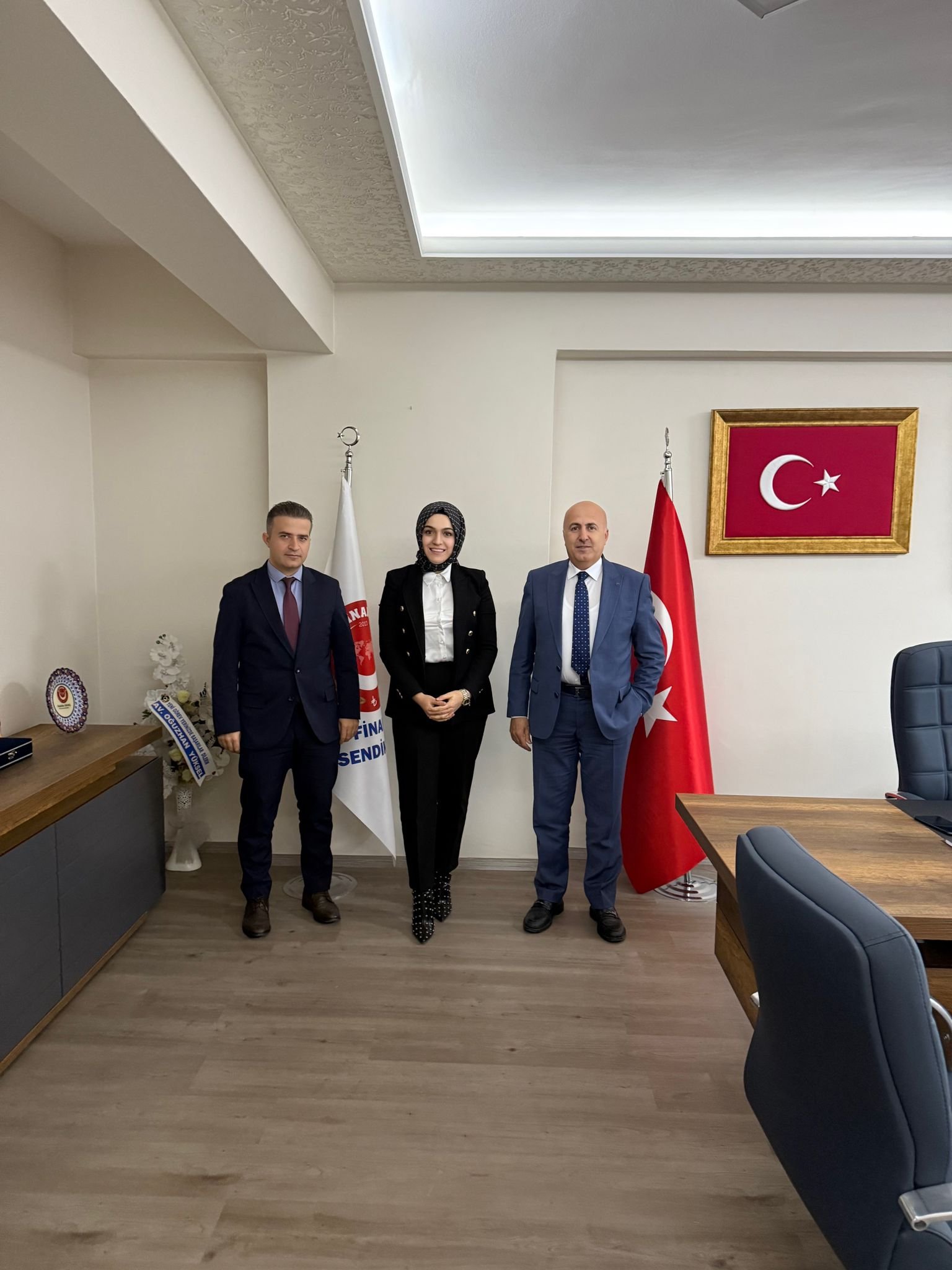 Sendikamız Erzurum Bölge Başkanlığı 2. Olağan Genel Kurulunda yeniden başkanlığa seçilen Erzurum Bölge Başkanı Habibe Savaş’a, Halk Bankası Erzurum Şube Müdürü Bülent Pesen ve Sendikamız Erzurum Bölge Denetleme Kurulu Üyemiz Ekrem Arıcı "Hayırlı Olsun" ziyaretinde bulundu.